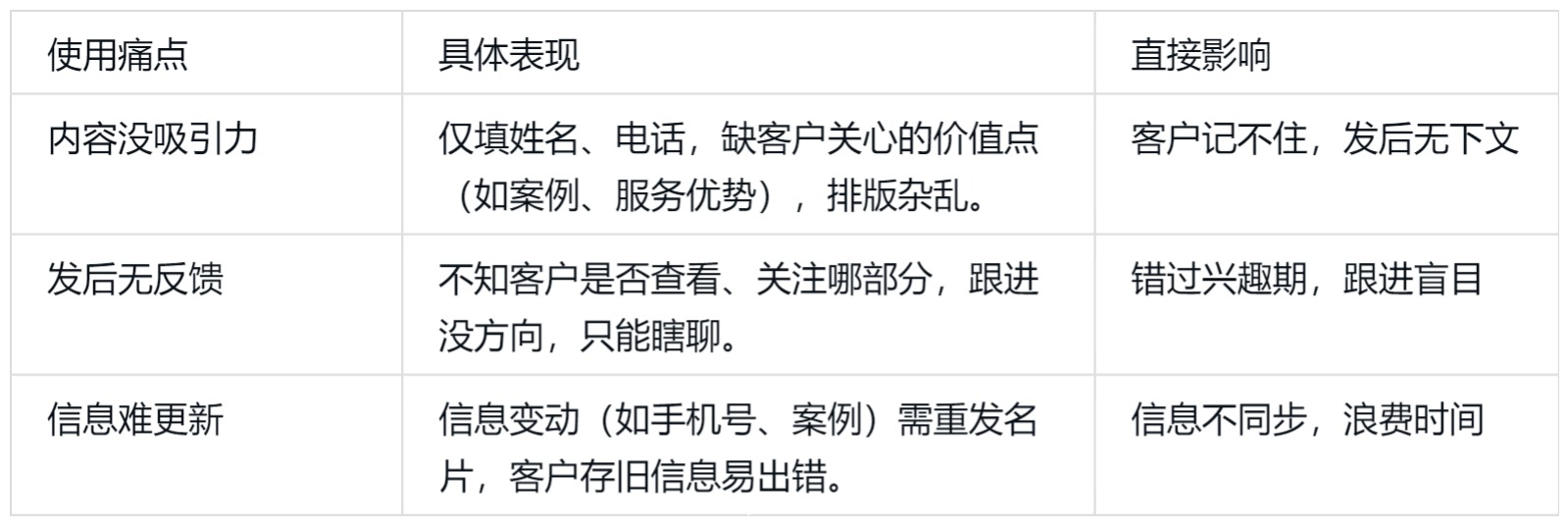 一、电子名片使用的 3 个核心痛点:没吸引力、无反馈、难更新